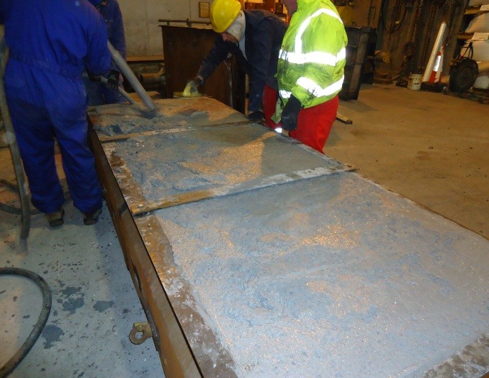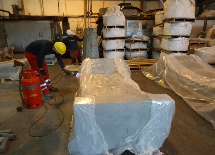 Büyük blokların tavlanması ile bloklar yere düzgün bir şekilde yerleştiriliyor, portatif olan fırın vinç ile kaldırılarak bu blokların üzerine konuluyor. Sonra fırının gaz bağlantısı yapılıyor ve ateşleniyor. Bu büyük blokların tavlaması diğerlerine göre daha uzun tutuluyor. Şu şekilde tavlanıyor, 50 dereceden başlıyor, 16 saatte 170 dereceye çıkıyor. 170 derecede 48 saat bekledikten sonra, 12 saatte 185 dereceye çıkıyor. 185 derecede 12 saat bekledikten sonra, 12 saatte 200 dereceye çıkıyor. 200 derecede 12 saat bekledikten sonra, 12 saatte 250 dereceye çıkıyor. 250 derecede 6 saat bekledikten sonra kendi kendine soğumaya bırakılıyor ve tavlama bitmiş oluyor.